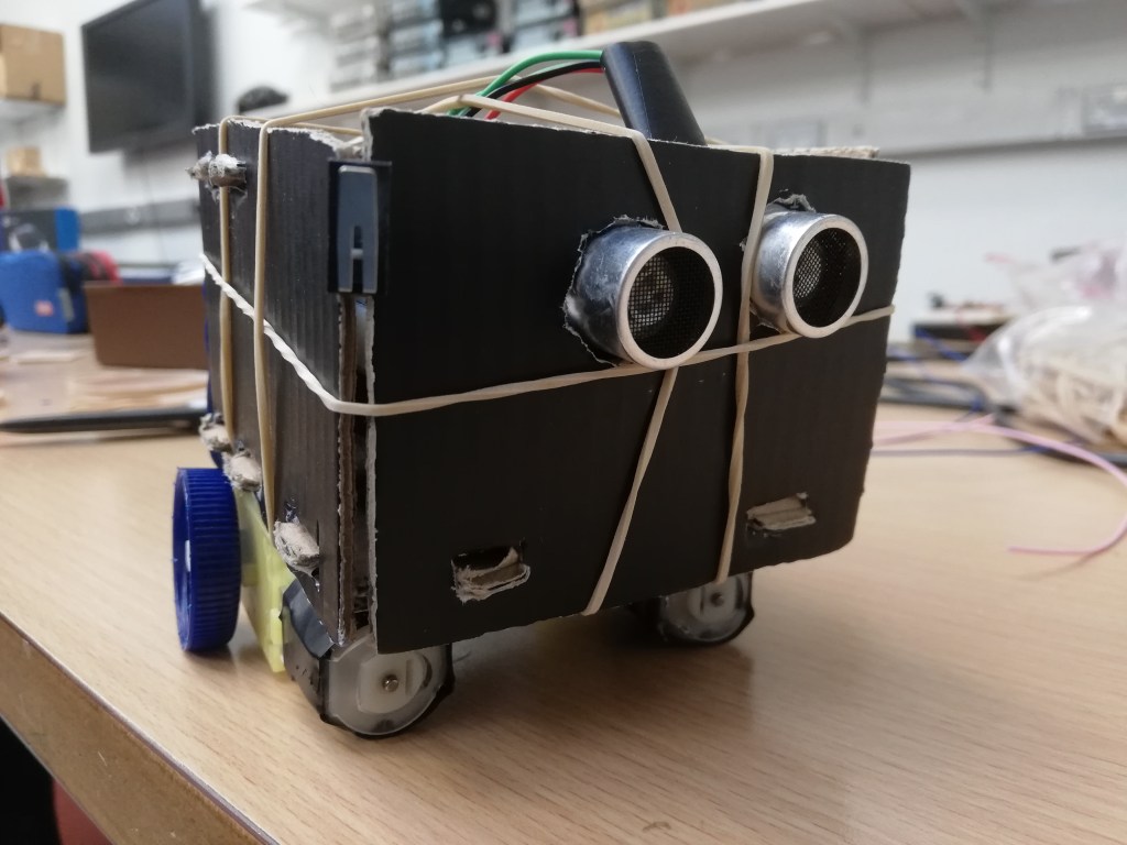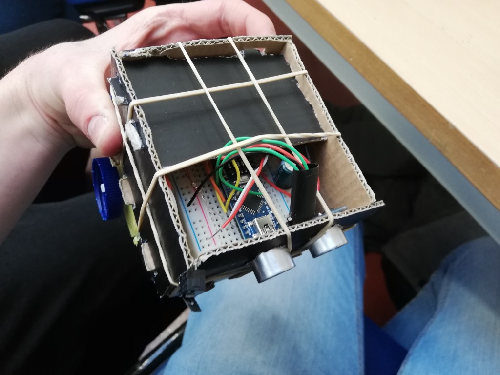 With the final week approaching for the ‘Tip The Can’ challenge we knew we had to be close to completing the work for it. This week was all about putting finishing touches to the code and the circuit and ultimately, assembling it into its cardboard chassis. We were all very excited to finally see our hard work get put together and we were really hoping for a successful time on the board.